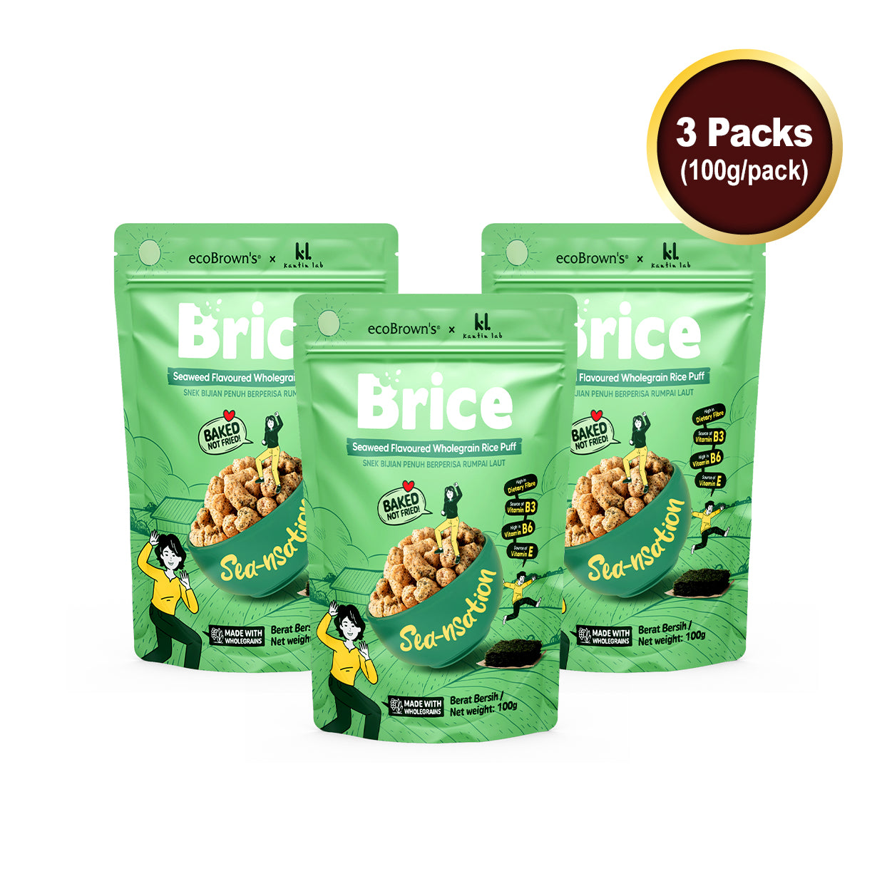 ecoBrown’s Brice Seaweed Rice Puff [Bundle of 3 x 100g]