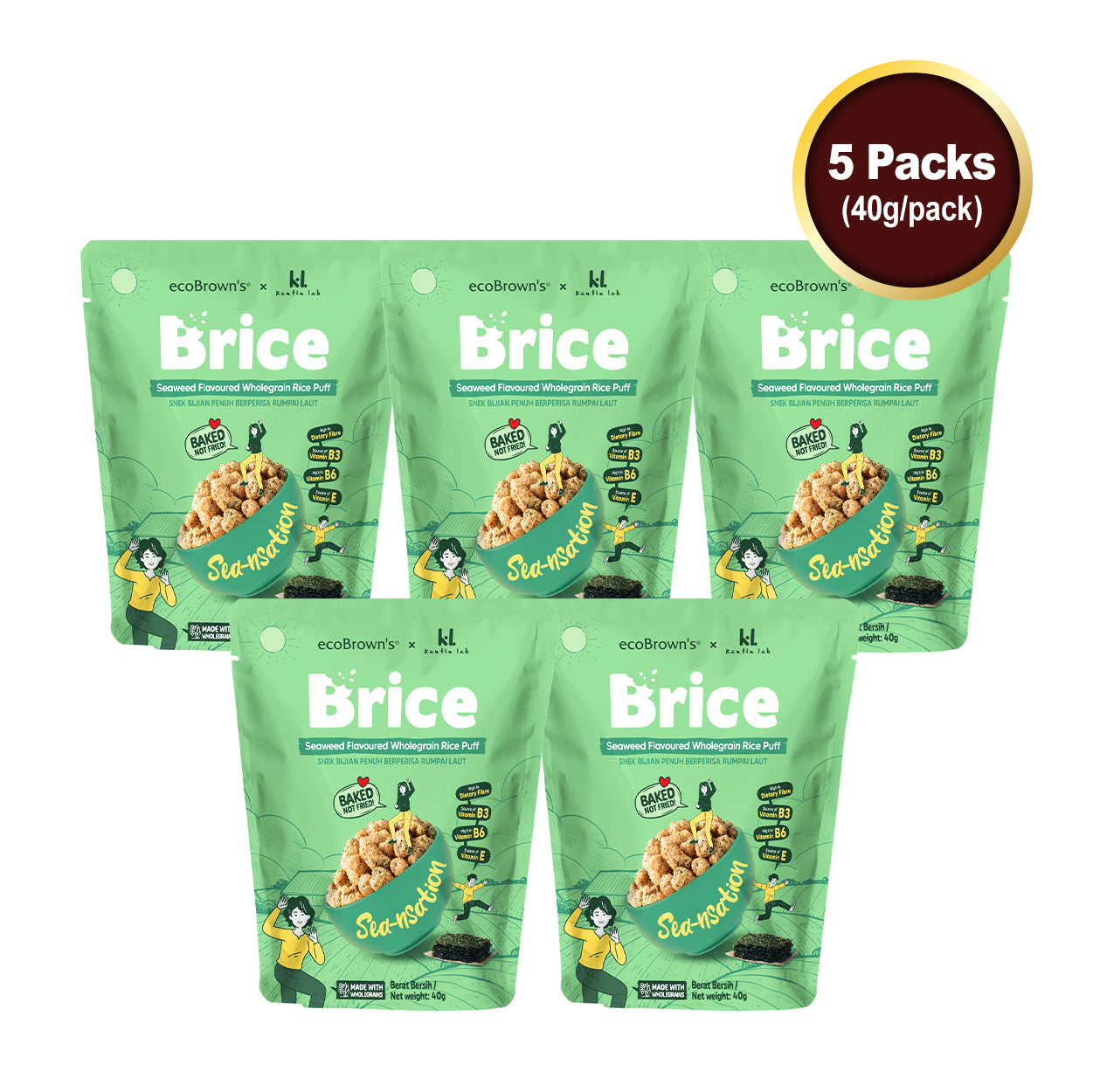 ecoBrown’s Brice Seaweed Rice Puff [Bundle of 5 x40g]