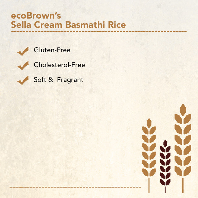 ecoBrown’s Sella Cream Parboiled Basmathi Rice is a special and premium quality of pusa basmathi range. It is widely popular due to its premium taste and aromatic fragrance and is naturally harvested in the fertile foothills of Himalayas. The harvested grains undergone the parboiling process to retain the nutrients and producing long slender grains. Its golden-coloured long grain elongates to double its length after cooking while giving its fluffy and non-sticky texture of the cooked rice. ecoBrown’s Sella Cream Parboiled Basmathi Rice can be widely used to prepare various cuisines. This rice is definitely ideal for the health conscious people to eat balance and healthy.